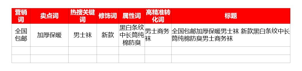 按照上面的表格,找出自己的产品需要的词语进行组词,打造黄金标题。